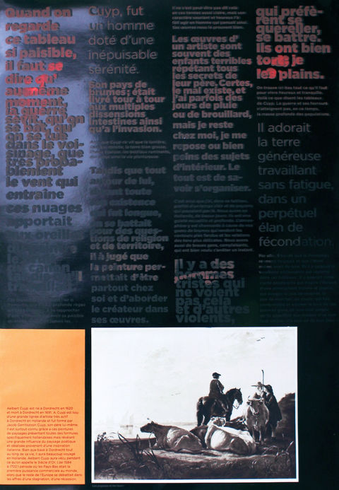 par un composition typographique lourde traduisant une situation politique de l’époque où le tableau a été peint. Œuvre d’Albert Cuyp, Paysans, bovins